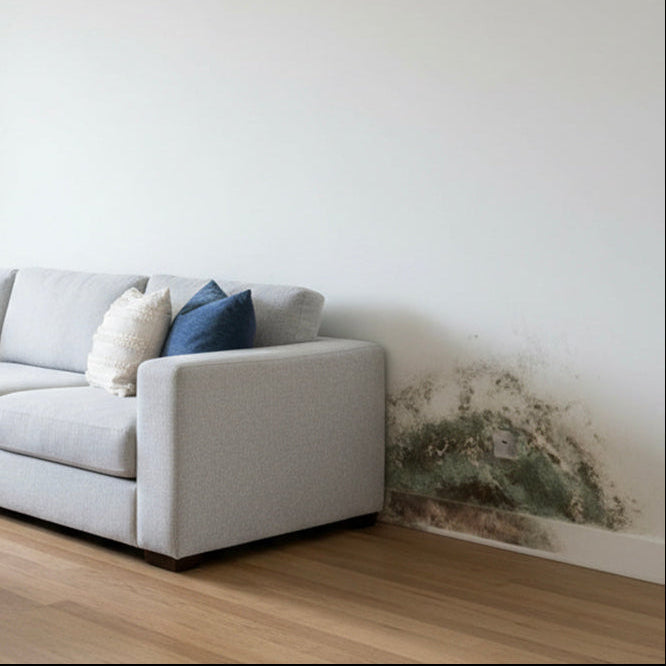Dry King bekämpft Schimmel nachhaltig: Infrarotwärme erwärmt das Mauerwerk, trocknet es tiefenwirksam und entzieht Feuchte, ganz ohne Chemie. Umweltfreundlich, sicher und einfach: flexibel aufstellen oder an der Wand befestigen für ein dauerhaft trockenes, gesundes Zuhause.